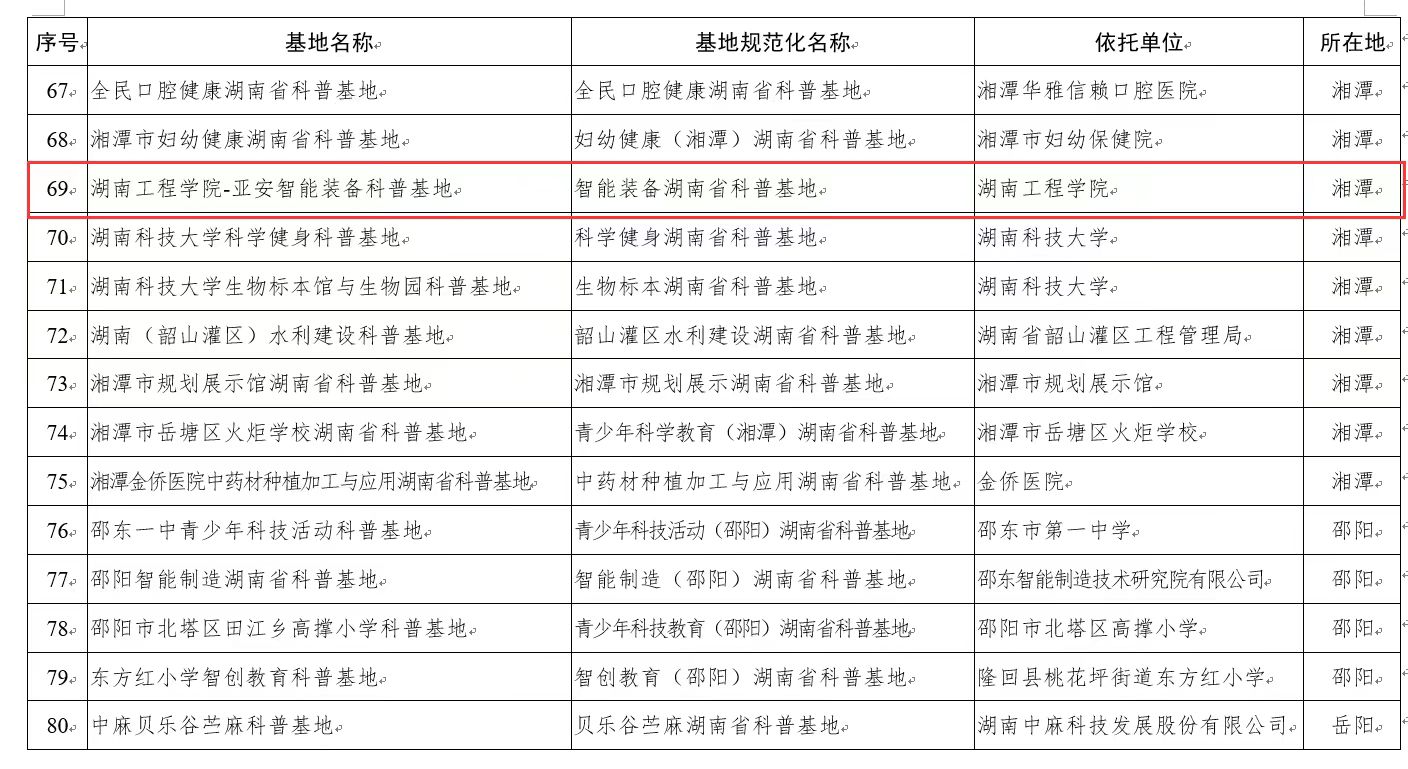 5月23日,湖南省科技厅公布湖南省省级科学技术普及基地备案、培育及取消名单,太阳成tyc122cc王高升老师牵头申报的“太阳成tyc122cc亚安智能装备科普教育基地”成功备案“智能装备湖南省科普基地”,成为公司首个省级科学技术科普基地。