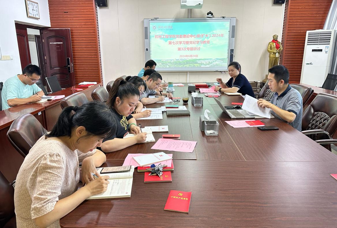 6月24日下午,机械工程公司党委理论学习中心组(扩大)在机械楼311开展2024年第七次集中学习暨党纪学习教育第三次专题研讨。公司党委书记覃波主持学习。公司党委副书记、经理陈国强,公司党委理论学习中心组成员,专职组织员,支部书记参加学习。