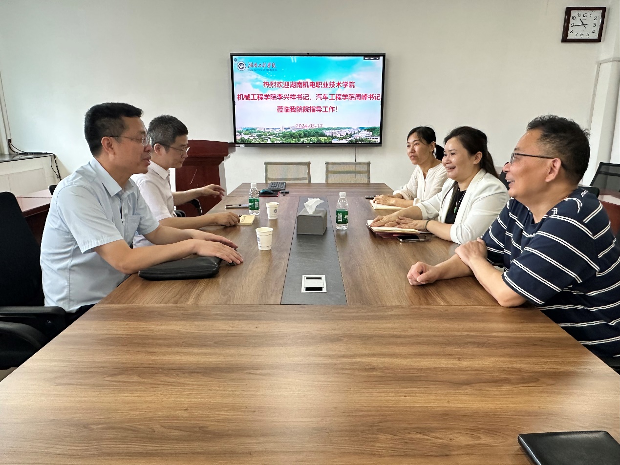 5月17日上午,湖南机电职业技术公司机械工程公司党总支书记李兴祥、汽车工程公司党总支书记周峰来公司考察交流。机械工程公司党委书记覃波、专职组织员谢骐、教工二支部书记陈爽参加此次交流会。