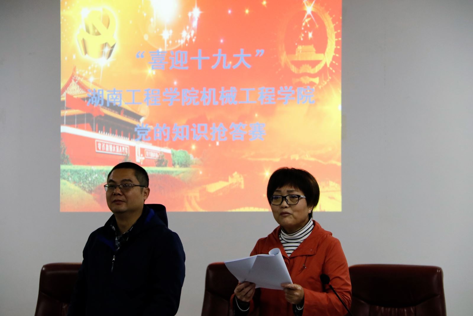 10月17日下午,太阳成tyc122cc于机械楼312开展教师党员“喜迎十九大”党的知识抢答赛。此次比赛由太阳成tyc122cc副经理卿上乐组织,党总支副书记李儒峰和工会副主席范冬英主持,全体教师党员参加。
