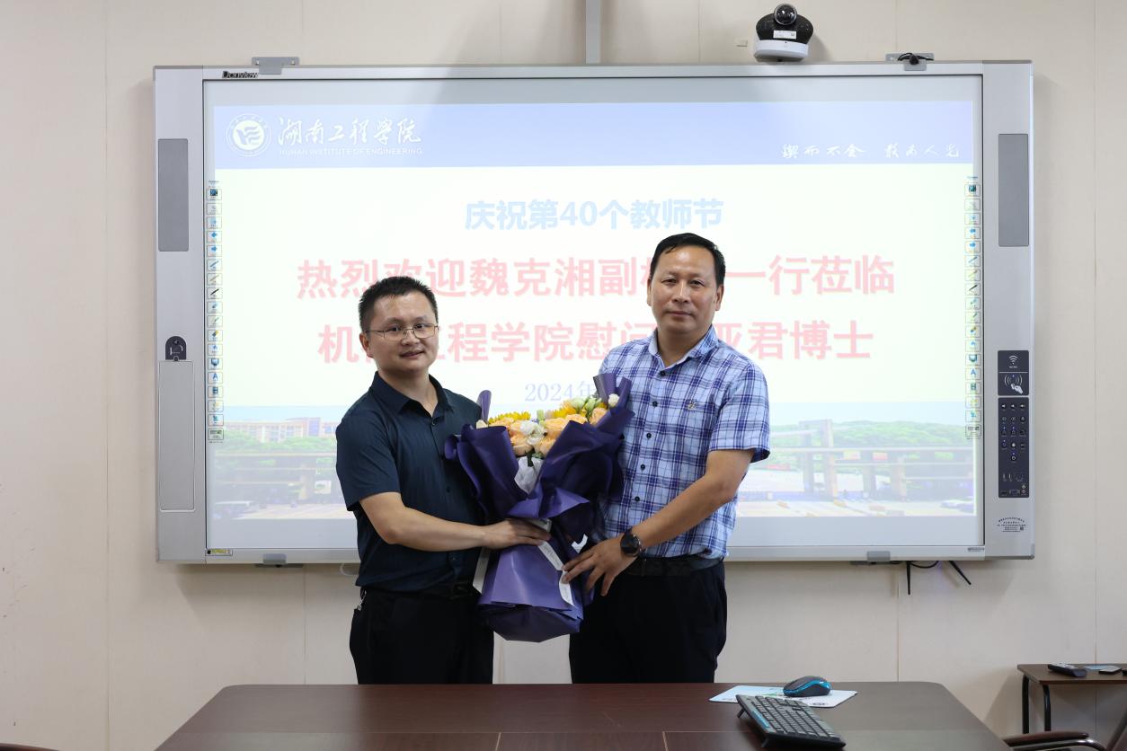 在第40个教师节来临之际,9月6日下午,公司党委委员、副董事长魏克湘带队来公司走访慰问,代表公司向教师代表罗亚君博士及公司全体教师致以节日的祝福和诚挚的问候,科技管理处处长张细政陪同走访。公司全体院领导参加。