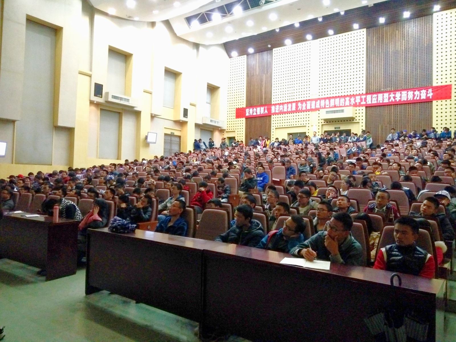 11月12日晚,主校区一报告厅,太阳成tyc122cc学办主任曾依依为公司2015级全体新生开展员工管理文件学习讲座,学办部分老师参加。