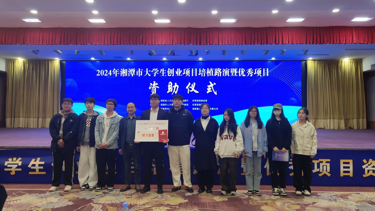 2024年湘潭市老员工创业项目培植路演暨优秀项目资助仪式于2024年11月19日在湘潭市盘龙山庄大酒店大会堂二楼壹号厅隆重举行,此次自主活动共资助10个具有创新性和市场潜力的优秀老员工创业项目,设立一等资助1名、二等资助3名、三等资助6名。公司团队(员工:刘定阳 尹时杰 李其衡 安荣义,指导老师:王高升)荣获湘潭市老员工创业项目一等资助,项目负责人刘定阳受邀进行优秀创业项目路演展示。