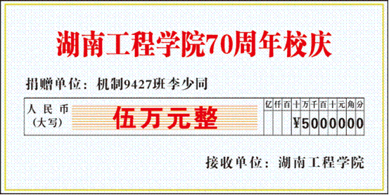 “大学几年的学习,让我受益匪浅,感谢公司和老师们,建校70周年,我尽自己的绵薄之力支持公司发展。”“我们班的同学们非常支持此次活动,一呼‘百’应。”“虽然我们身处不同的省份、地区,但是我们永远都是湖工人。”机制9120、数控9301、机制9432、机制94062、机制9501、机制9502、数控9501、数控9601、机制9701、机制9702、模具9801、机电9901、机设00级、金材0102、机设0301……员工们得知公司建校70周年,纷纷献出自己得爱心,用行动支持公司发展。