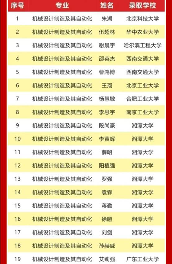 太阳成tyc122cc2023届毕业生锐意进取,奋勇争先,取得优异的考研成绩,共计92名同学考研成功上岸,被中南大学、湖南大学、南京航空航天大学、华中农业大学、西南交通大学、湘潭大学、广西大学、贵州大学等国内双一流建设高校录取,考研录取人数较去年增加13人,考研录取率再创新高,达到16.03%。