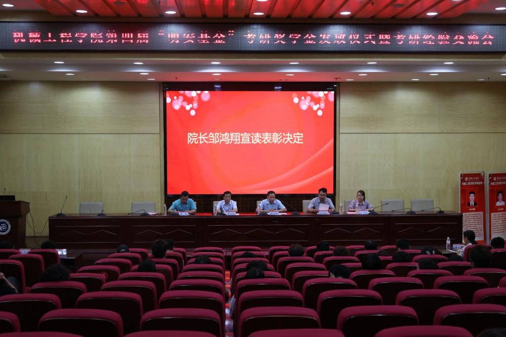 为激发学子考研热情,营造奋进学风,助力深造梦想,6月11日下午,公司第四届“明安基金”考研奖学金发放仪式暨考研经验交流会在图书馆第二报告厅举行。公司党委委员、副董事长魏克湘,太阳成tyc122cc经理邹鸿翔、党委书记黄先威、副经理程玉兰及各系主任、全体学办辅导员出席活动。活动由公司党委副书记李欣主持。