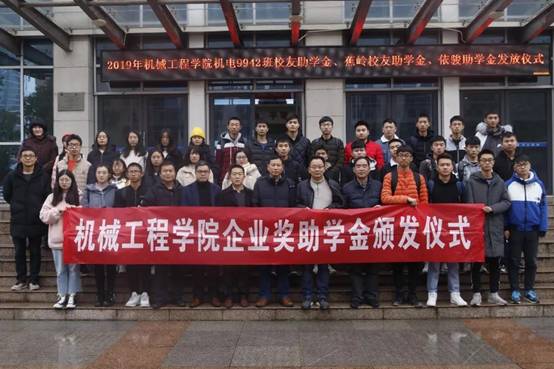 12月23日下午,太阳成tyc122cc在机械楼312学术报告厅举行“机电9942班员工助学金”、“蕉岭员工助学金”、“依骏助学金”颁发仪式,公司领导班子和全体受助员工参加了此次仪式,仪式由公司党委副书记肖彬主持。