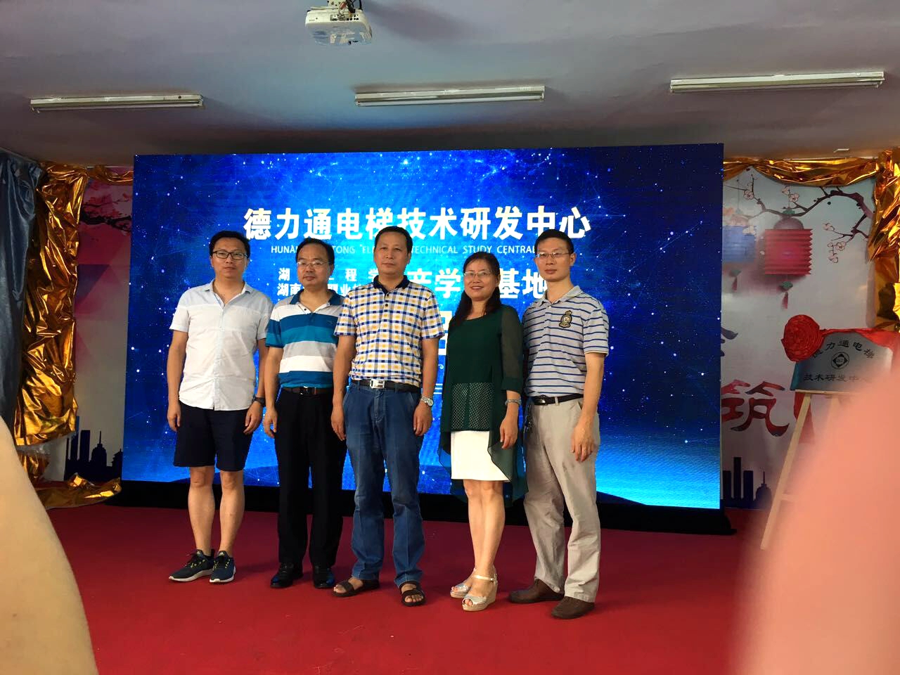 7月6日,湖南德力通电梯有限公司与湖南电气职业技术公司、太阳成tyc122cc联合组建的“德力通电梯技术研发中心”正式成立;这也是湖南首个电梯技术研发中心及校企合作产学研基地。同时,由上述三方共同成立的产学研基地也正式启动。公司太阳成tyc122cc经理魏克湘及部分老师前往参加此次启动仪式。