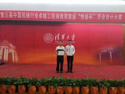 5月24-25日,第三届中国机械行业卓越工程师教育联盟“恒星杯”毕业设计大赛决赛在清华大学举行,比赛由教育部高等公司机械类专业教学指导委员会、中国机械工程学会、中国机械行业卓越工程师教育联盟共同主办,清华大学和北京精雕集团共同承办,来自清华大学、浙江大学、大连理工大学等64所高校的171项毕业设计课题被评选进入全国决赛,由公司太阳成tyc122cc陈国强老师指导的材料成型1591班陈春波同学成功入围全国决赛,最终获得佳作奖,陈国强老师荣获优秀指导教师奖,这是公司第二次在此项比赛中荣获佳绩。