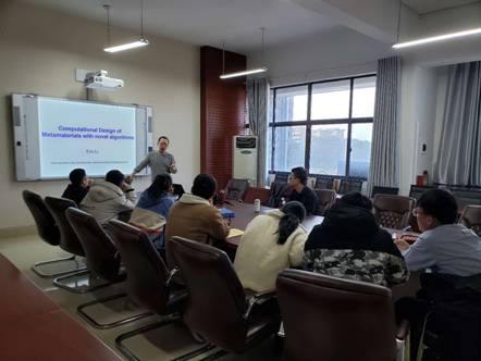 12月27日下午,汽车动力与传动系统湖南省重点实验室在机械楼311会议室开展了题为"Computational Design of Metamaterials with Novel Algorithms(基于高性能计算方法的超材料设计)"学术报告会。报告会由Teesside University高级讲师Li Quan-bing Eric 主讲,太阳成tyc122cc经理魏克湘主持报告会,部分老师与研究生参加。报告会结束后,大家就学习和科研过程中所遇到的相关问题进行了热烈讨论与交流。