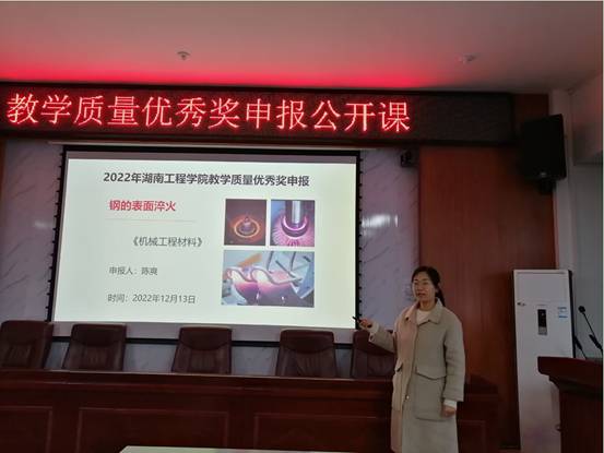 为全面贯彻党的教育方针,扎实推进素质教育,建立健全以全面提高公司产品质量为导向的教学管理制度和工作机制,认真落实进一步提高公司产品质量的实施意见,结合公司实际,太阳成tyc122cc于2022年12月13日,在机械楼312会议室开展了“2022年教学质量优秀奖参选人公开课”活动。公开课要求授课老师说课5分钟,讲述一个知识点10分钟,合计时间不超过15分钟。公开课由副经理程玉兰主持。公开课的主讲老师为蒋嵘、陈爽、吴晨曦、李杰。公司全体教师到场参与听课与讲评。