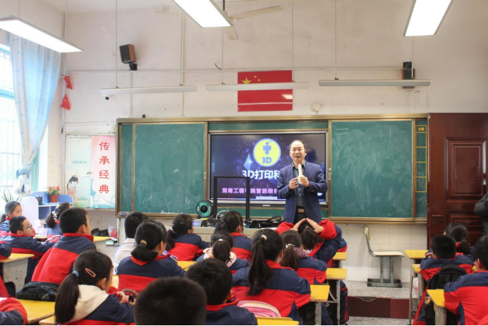“大家找一找那些是3D打印的作品?”“思考一下,这么复杂的作品是如何通过3D打印出来的呢?”“你们认为普通打印机与3D打印机有哪些区别呢?”在智能装备科普基地负责人王高升老师一个个问题的设置和解答中,小员工们了解了3D打印技术的概念、原理、材料、应用以及未来发展趋势,更让他们近距离观察到3D打印设备的工作形态,启蒙了同学们的创新意识和实践能力,充分感受到了科技的魅力。