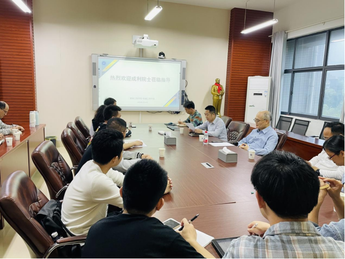 参观活动结束后,成利院士与公司师生在机械楼311会议室举行了座谈交流会。会议由经理陈国强主持。座谈会上,成院士介绍了香港理工大学办学理念、特色及其团队研究方向和主要研究成果等,随后结合自身求学和工作经历,分享了教师该如何做好科研、研究生如何做好职业规划,并引导年轻教师面向国家和社会需求凝练自己研究方向,从国家和社会迫切需要解决的重大工程问题中提炼出共性科学问题作为攻关对象,善于洞察和把握其内在的规律和本质,做出具有原始创新性的成果。成利院士生动质朴的语言和丰富多元的故事,使得现场气氛活跃,师生认真聆听,积极互动,欢笑声和鼓掌声融成一片。