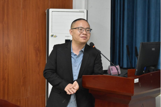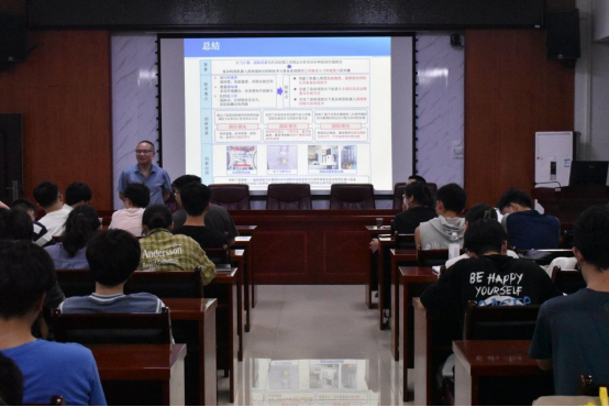 讲座开始前,陈国强讲话。他简要介绍了余桂林的求学事迹以及科研成就,佘桂林主要从事流体强扰动下薄壁结构动力学行为的研究,取得了一系列国际公认的研究成果,相关成果已被成功应用于国家核心技术领域,获得2021年度重庆市科学技术奖技术发明奖一等奖。他提议同学们以员工余桂林为榜样,在学习和科研探索过程中不断坚定理想信念,磨炼意志品质,涵养家国情怀,为国家和社会做出自己的贡献。