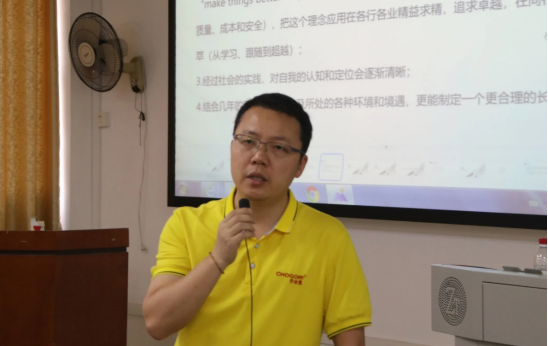 “你眼中的IE是什么?未来IE能干什么?”彭显炎围绕“IE的现状、IE的发展路径、企业对IE专业员工的期望以及IE的优化”等方面向在座的员工作阐述。“虽然中国的IE产业引入较晚,发展仍旧处于初级阶段,但现如今越来越多的企业需要拥有IE专业知识储备的人才,IE的应用也愈加广泛”彭显炎说道。他还就IE人才培养这一话题提出四点建议:定好位、找准需求、定向设置课程和学练结合。在本科阶段确定方向与定位,做有目的的学习与训练,通过实验实习,将所学与实际问题相结合,从而对专业知识有更加深入的理解和思考,让自身的专业实践能力得到提高。在未来的工作阶段,建议先在制造业实践几年,结合技术与管理,深入学习了解行业的背景。