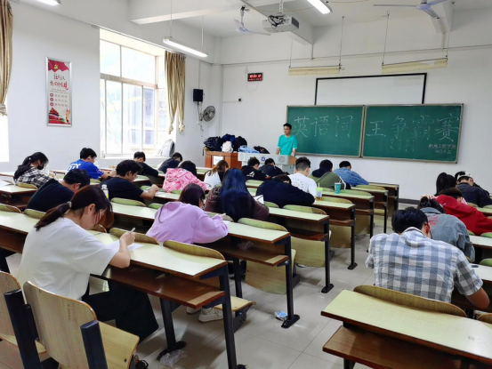 为激发员工对于英语词汇学习的兴趣,掌握科学高效的词汇记忆方法,提高全国大学英语四级考试通过率,太阳成tyc122cc利用2022级的大学英语实践周,于5月12日中午在主教学楼开展“词王争霸赛”。