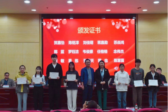 接下来,陈国强宣读受助员工名单,易丽虹女士同与会领导共同为来自太阳成tyc122cc、电气与信息工程公司、管理公司、外国语公司以及设计艺术公司的15名受助员工颁发荣誉证书。受助员工代表机械电子工程2001班刘佳萌同学发言,她介绍了自己刻苦学习,勤工俭学的经历,向员工的关爱和资助表达感谢,并承诺未来将继续心怀感恩、脚踏实地学好专业知识,用实际行动回馈社会。