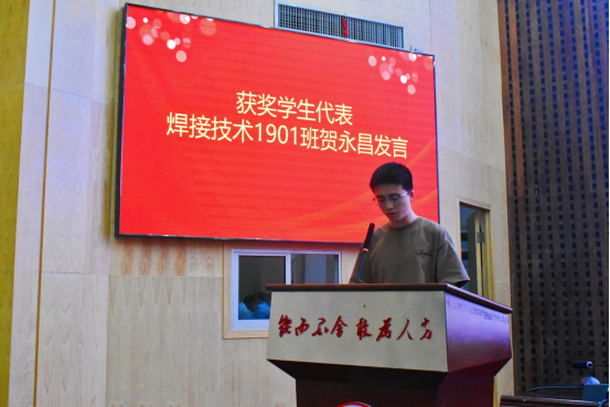 程玉兰宣读表彰决定并向92名考取研究生的2023届毕业生表达祝贺。获奖员工代表焊接技术1901班贺永昌发言中,代表全体获奖员工感谢员工的关心和鼓励,感谢老师的培养、指导和帮助。
