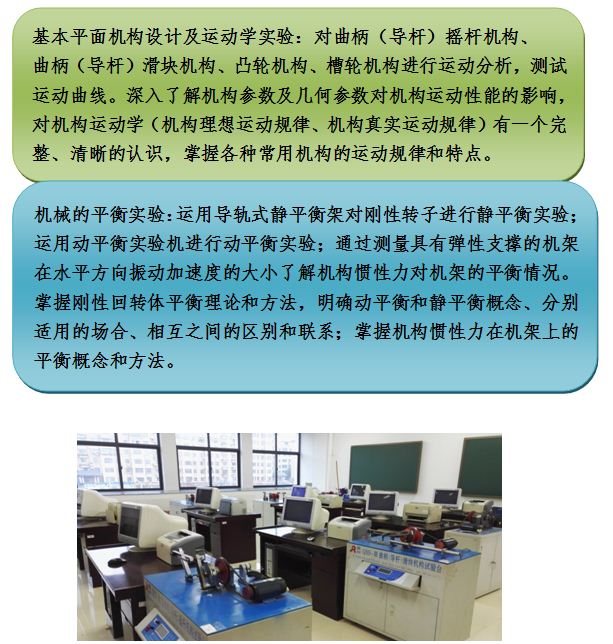 可开设实验:基本平面机构设计及运动学实验、机械的平衡实验