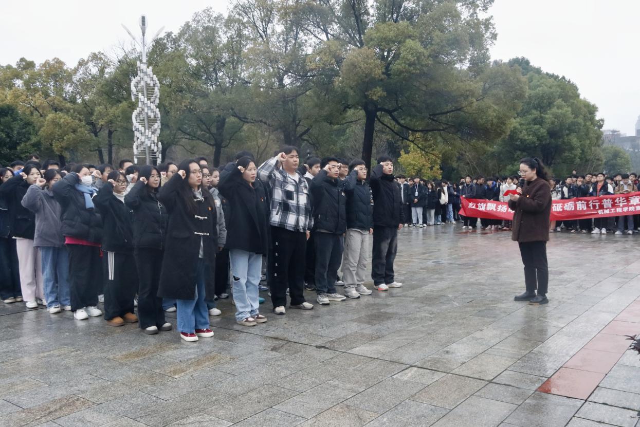 随后,预备党员们整齐列队,面向党旗庄严宣誓。“我志愿加入中国共产党,拥护党的纲领......”一句句铿锵有力的誓言,不仅展现了机械学子对理想信念的坚定追求,更彰显了他们肩负起新时代使命的决心与勇气。