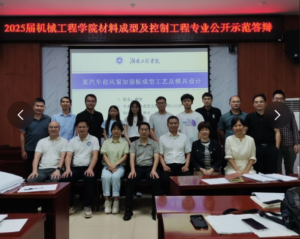 5月26日晚7点,公司2025届材料成型及控制工程专业毕业设计公开示范答辩在机械楼312顺利举行。本次答辩会由专业负责人、智能科学与工程公司经理陈国强担任答辩委员会主任,湘潭屹丰模具制造有限公司工艺部部长邹聪、湖南吉利汽车部件有限公司冲压技术质量科科长贺妍雯、以及材料成型专业2025届毕业生指导老师共同担任答辩评委。会议由系主任陈爽主持。
